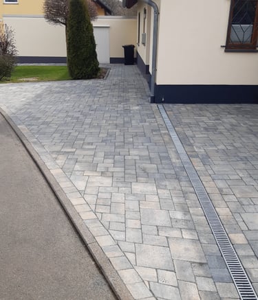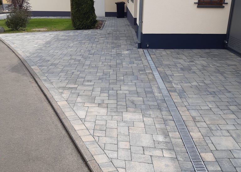 Wir gestalten Einfahrten, Wege und Flächen mit präziser Pflasterarbeit.
